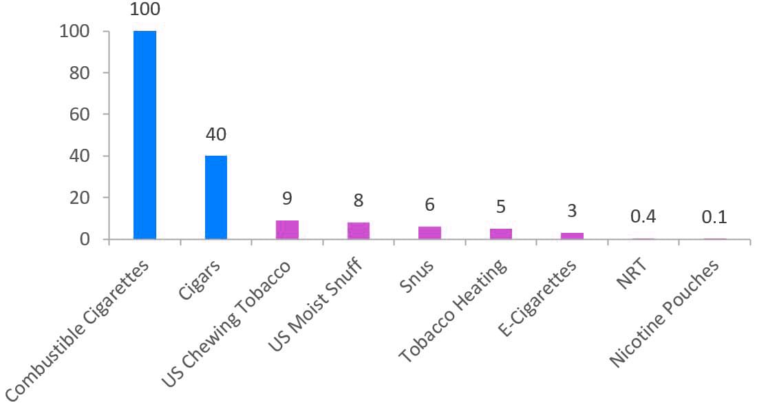 Relative Risk of 15 Key Tobacco & Nicotine Categories